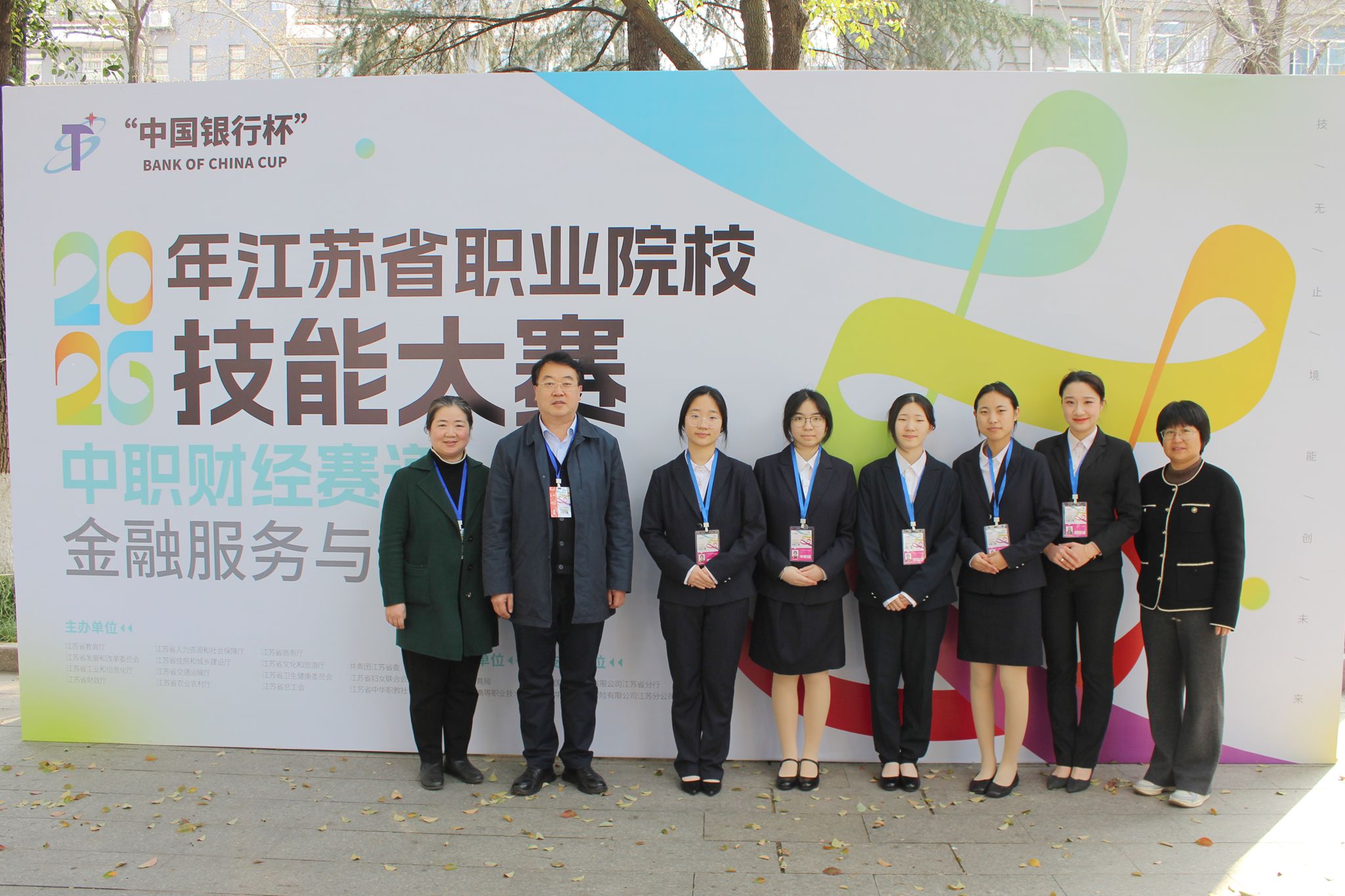 3月25日至27日,2026年江苏省职业院校技能大赛中职财经赛道金融服务与管理项目在我校举行。来自全省26所职业院校的113名师生同台竞技。我校代表队表现出色,由汪筠茜、朱沐恩、温蕊华、杨宇璇四位同学组成的团队荣获学生组一等奖第一名,教师王晓璐斩获教师组一等奖。