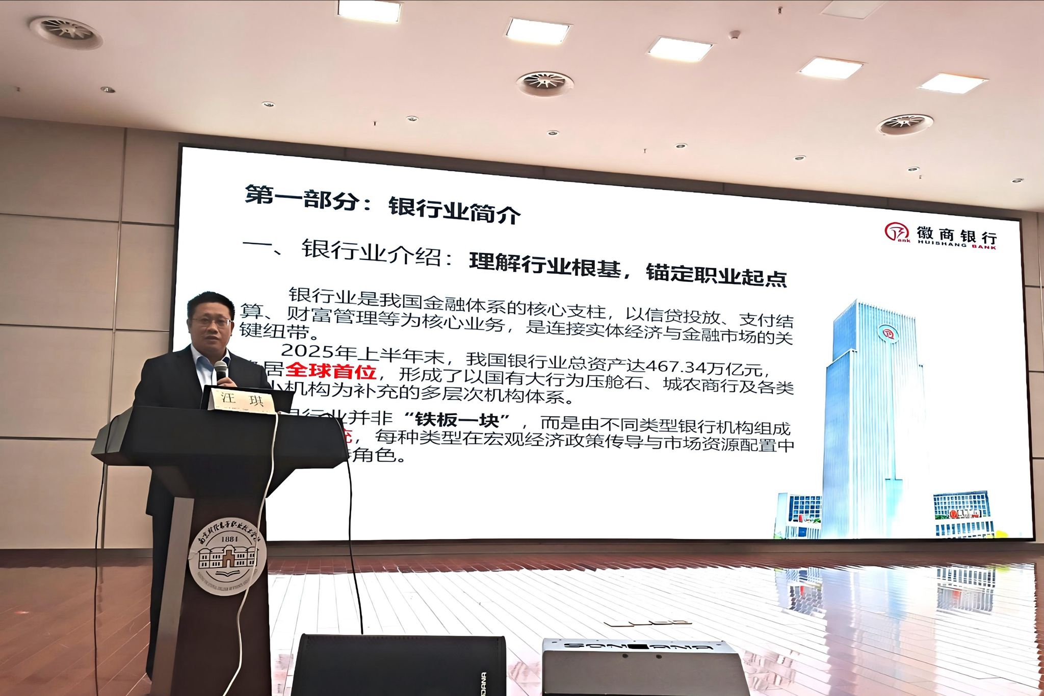 讲座中,汪琪从银行业分类切入,系统阐释中央银行、政策性银行、大型商业银行等六大类金融机构职能定位,以翔实数据介绍徽商银行发展规模与行业地位。针对金融行业新趋势,他指出利率市场化、金融科技冲击、经济周期波动构成三大挑战,利率市场化加剧金融机构竞争,金融科技重塑业务模式与服务方式,经济周期波动影响资产质量与盈利能力。同时,他强调绿色金融、养老金融、低空经济等领域蕴含发展机遇,符合可持续发展理念、契合社会需求、具备巨大潜力。