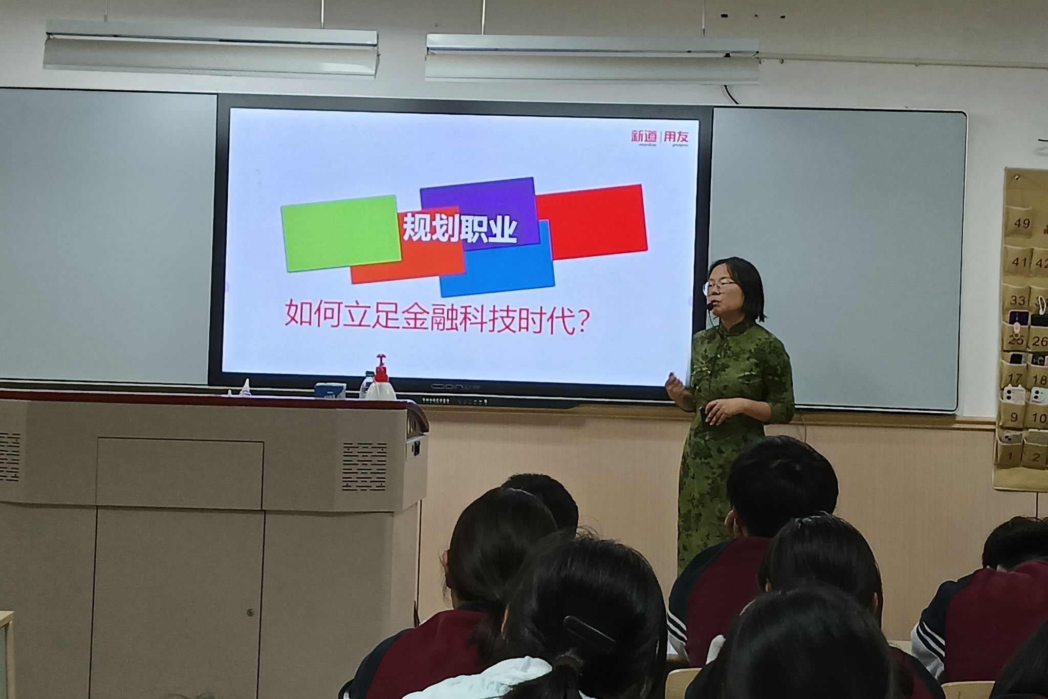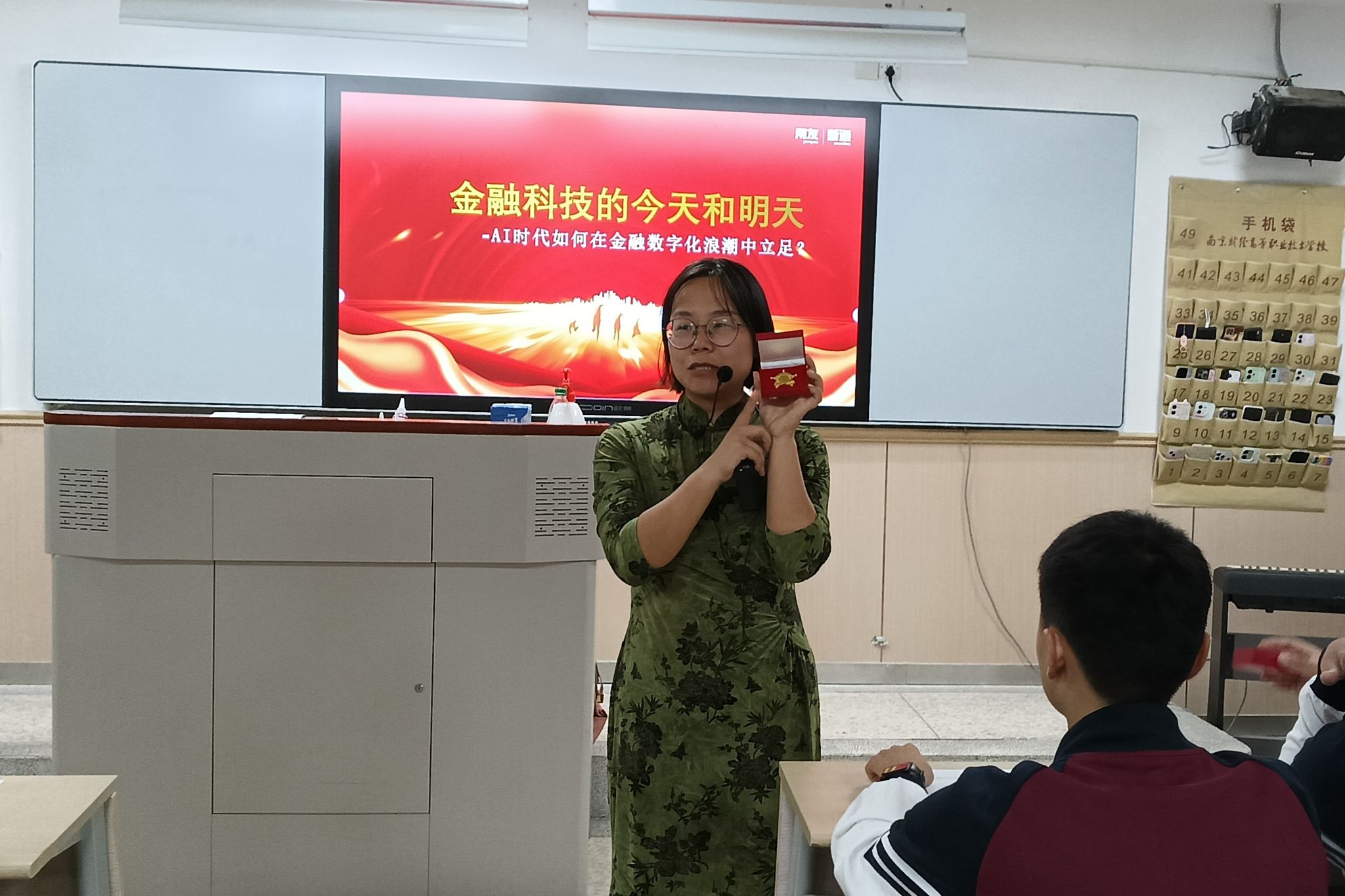 10月14日下午,用友·新道江苏分公司教学服务总监、数智产业学院秘书长王文娟来到我校江宁校区,为2025级金融科技应用班创新班举行开班授徽仪式。